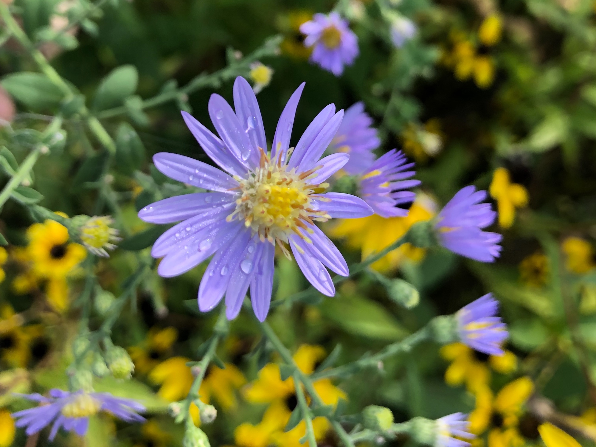 Above: Light Blue Aster along banks of retaining pond on corner of Nakoma Road and Manitou Way on September 13, 2019 (61°).