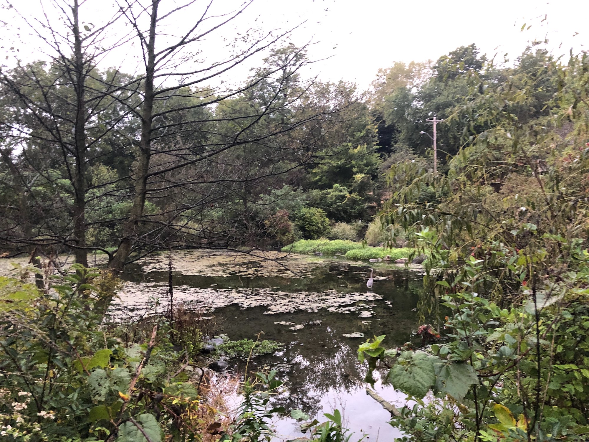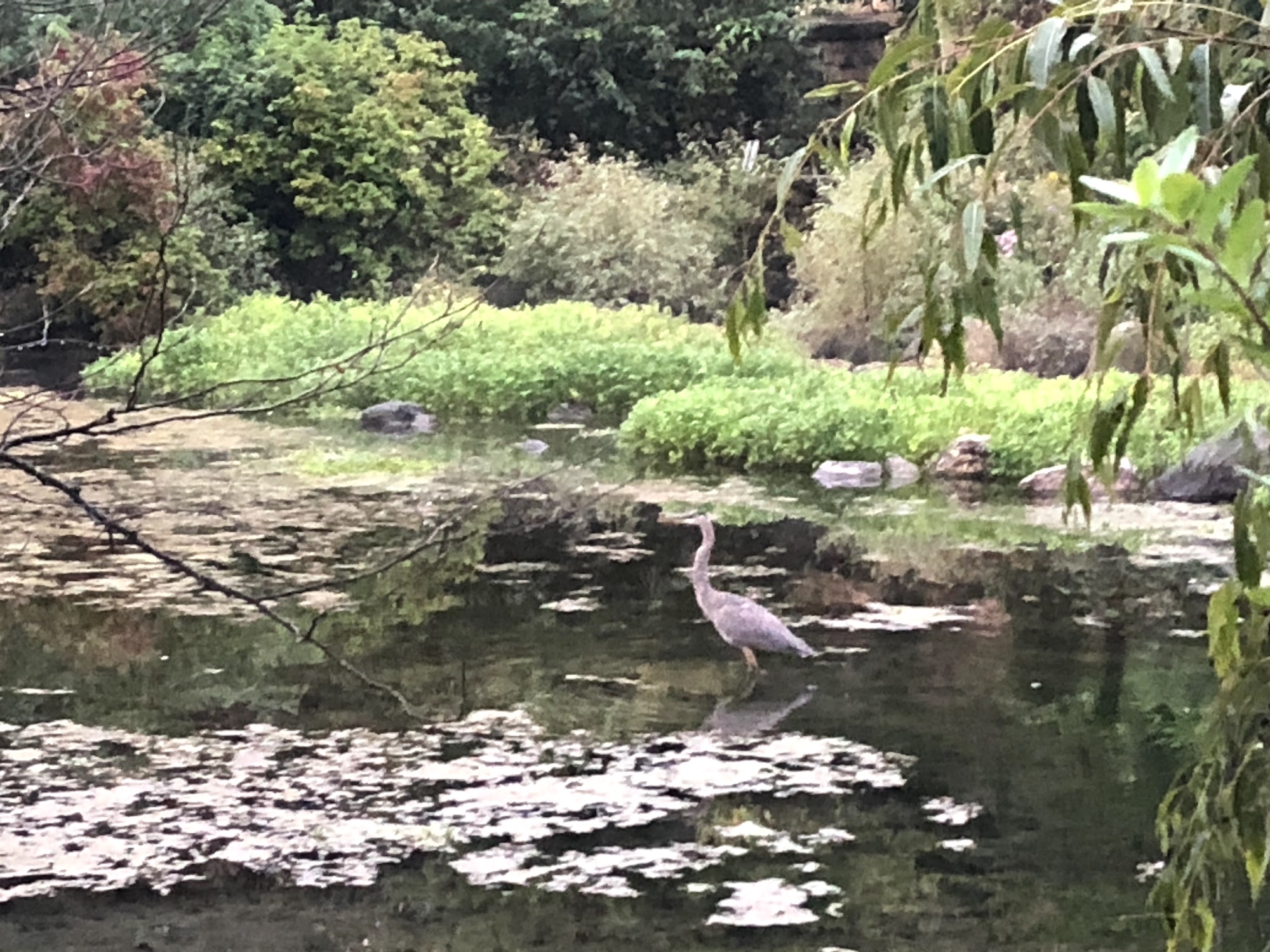 Above: Great Blue Heron in Duck Pond on September 21, 2019 (71°).