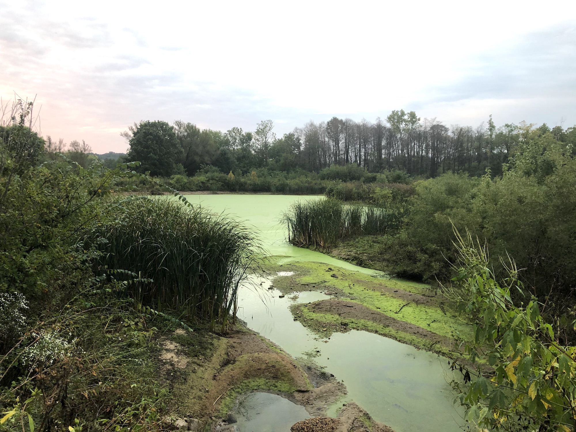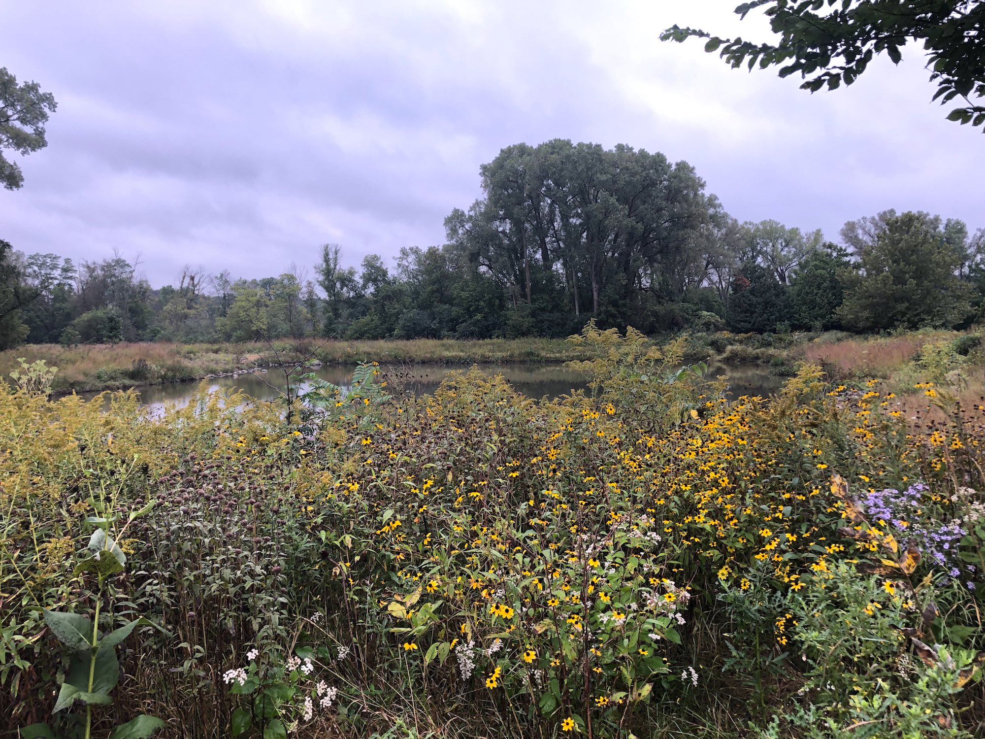 Above: Retaining pond on corner of Nakoma Road and Manitou Way on September 21, 2019 (71°).