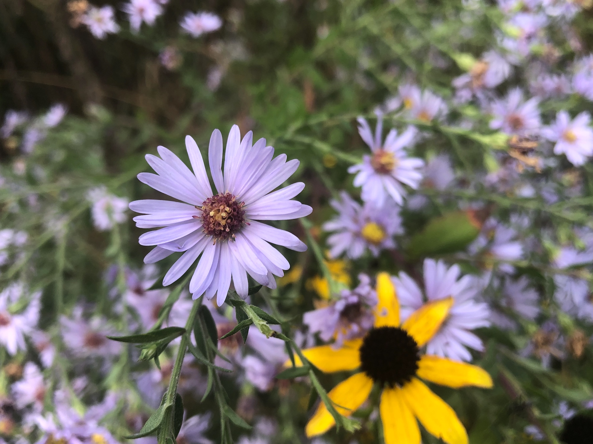 Above: Aster on banks of retaining pond on September 25, 2019.