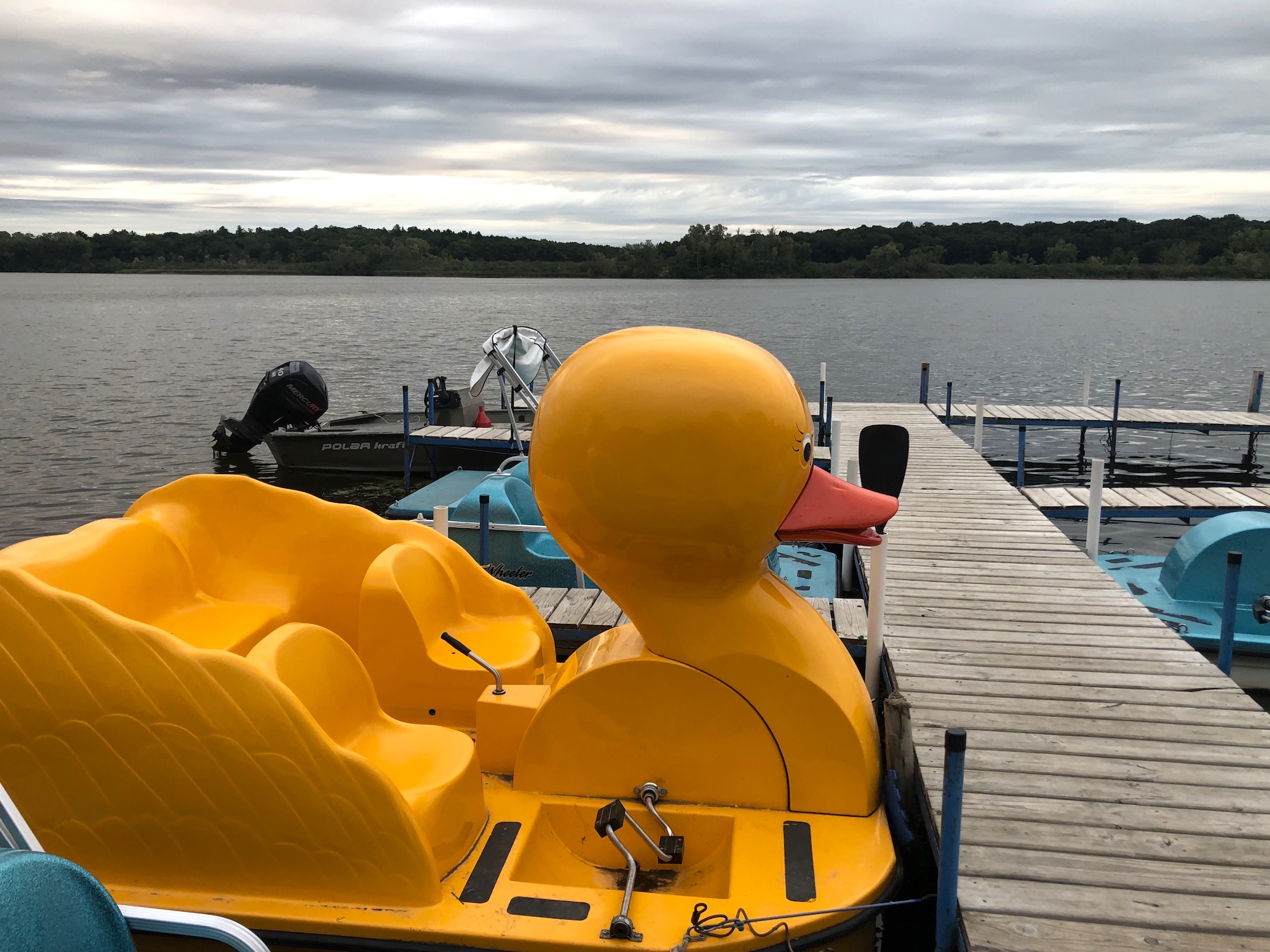 Above: Duck Boat at Wingra Boats on Lake Wingra. Getting close to migrating to a warm boathouse.