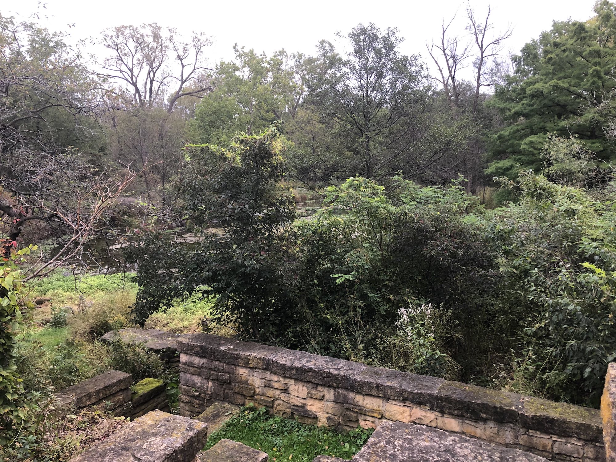 Above: Retaining pond on corner of Nakoma Road and Manitou Way on September 27, 2019 (61°).