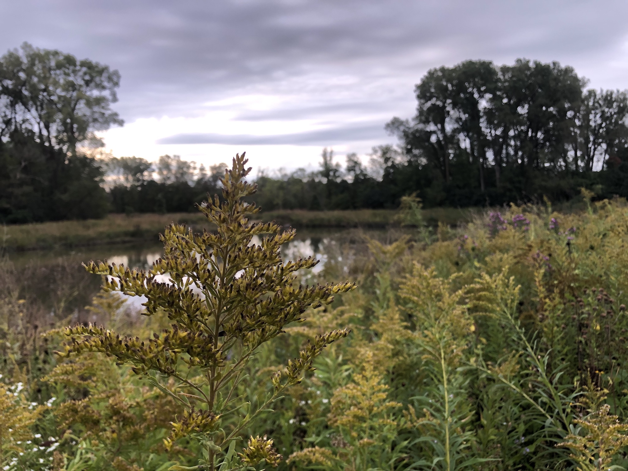 Above: Aster on banks of retaining pond on September 27, 2019.