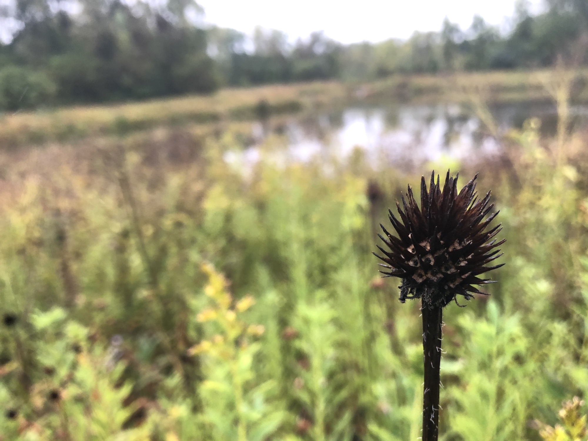 Above: Purple Coneflower on banks of retaining pond on September 29, 2019.