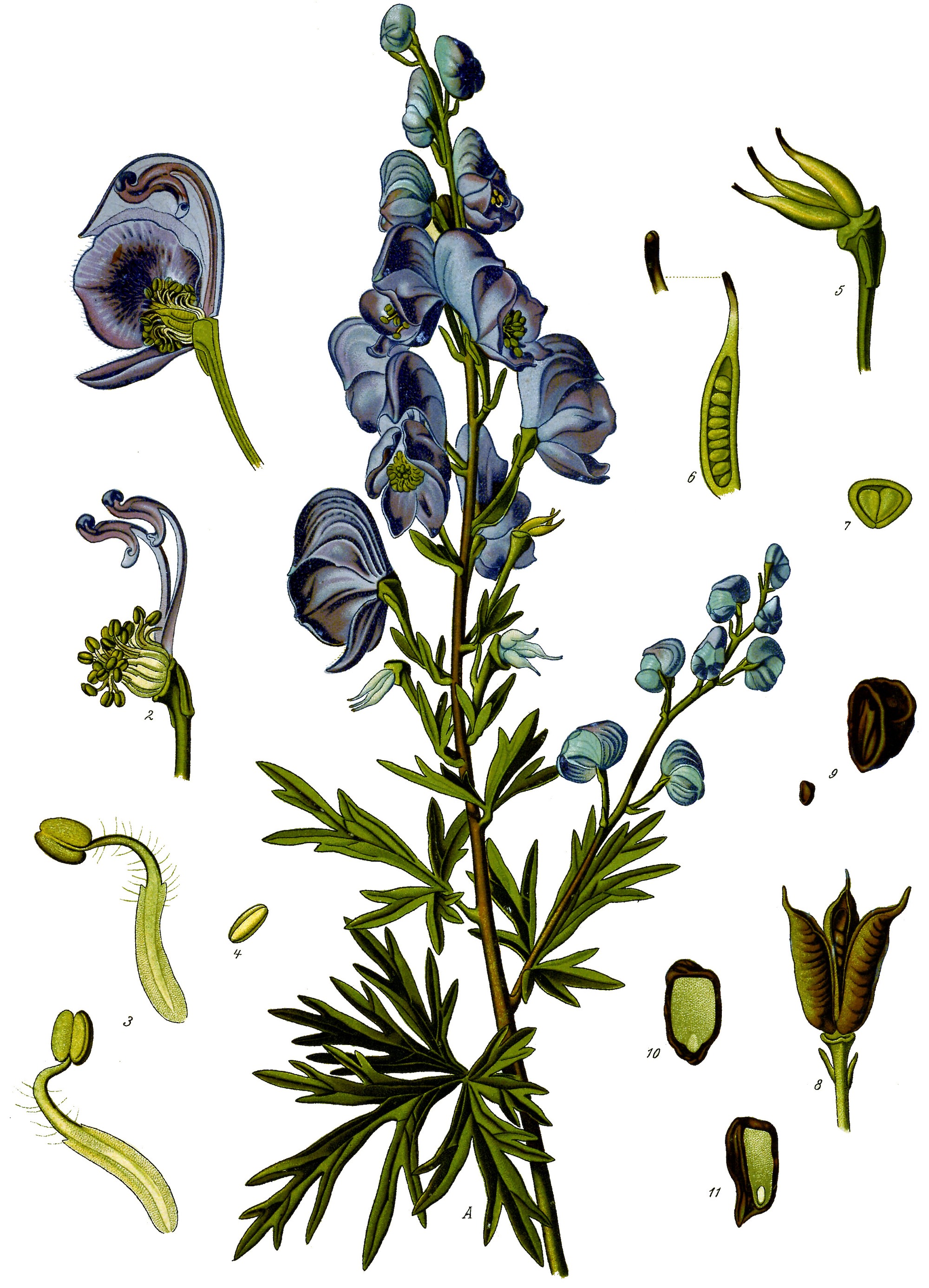 Above: Garden Aconite (Aconitum Napellus) botanical illustration by Otto Wilhelm Thomé circa 1885.