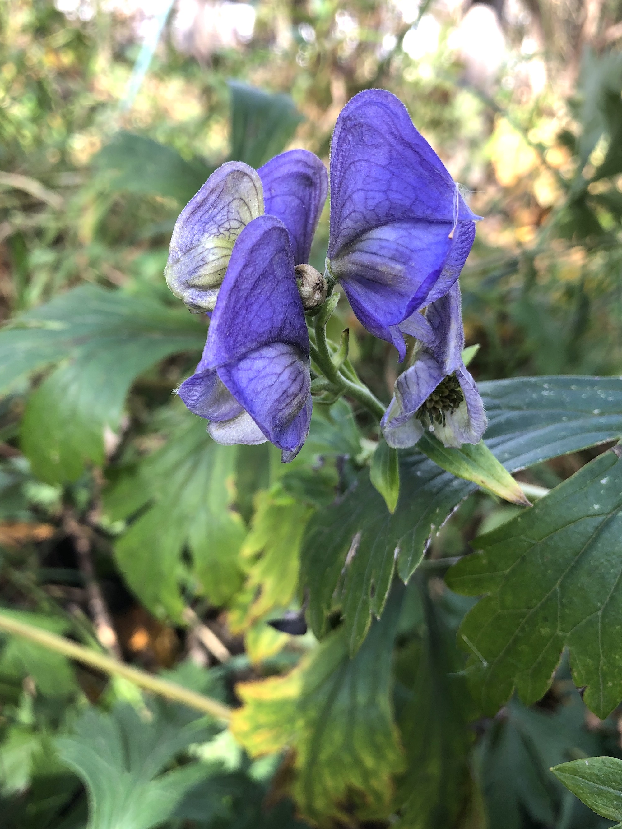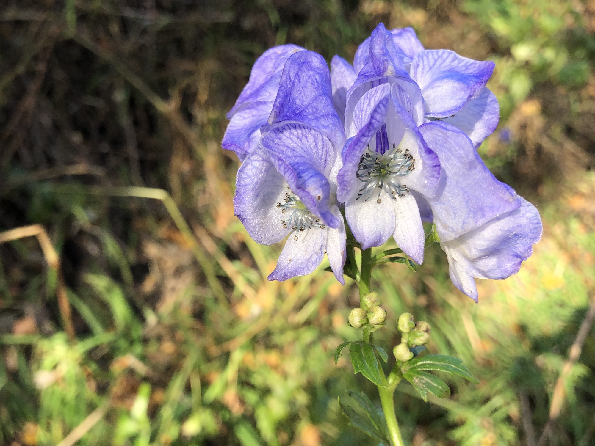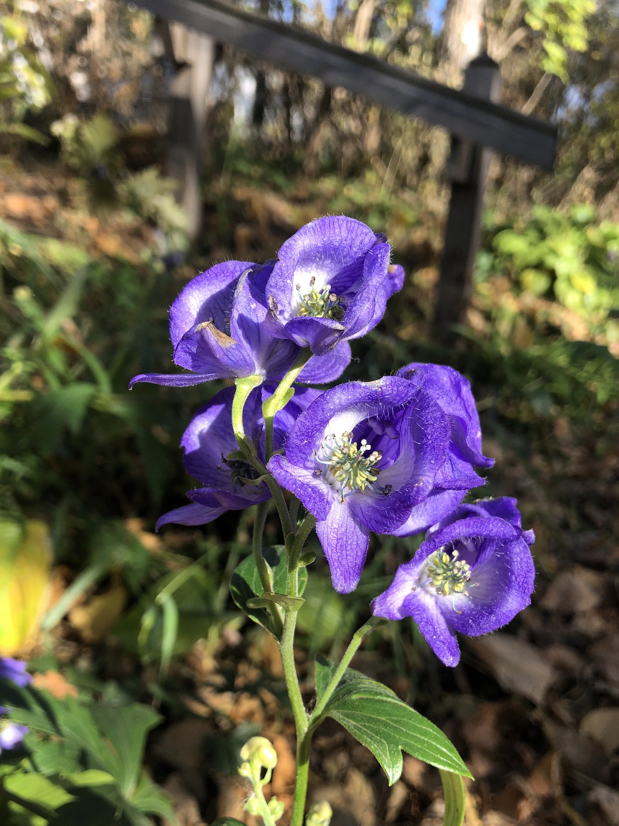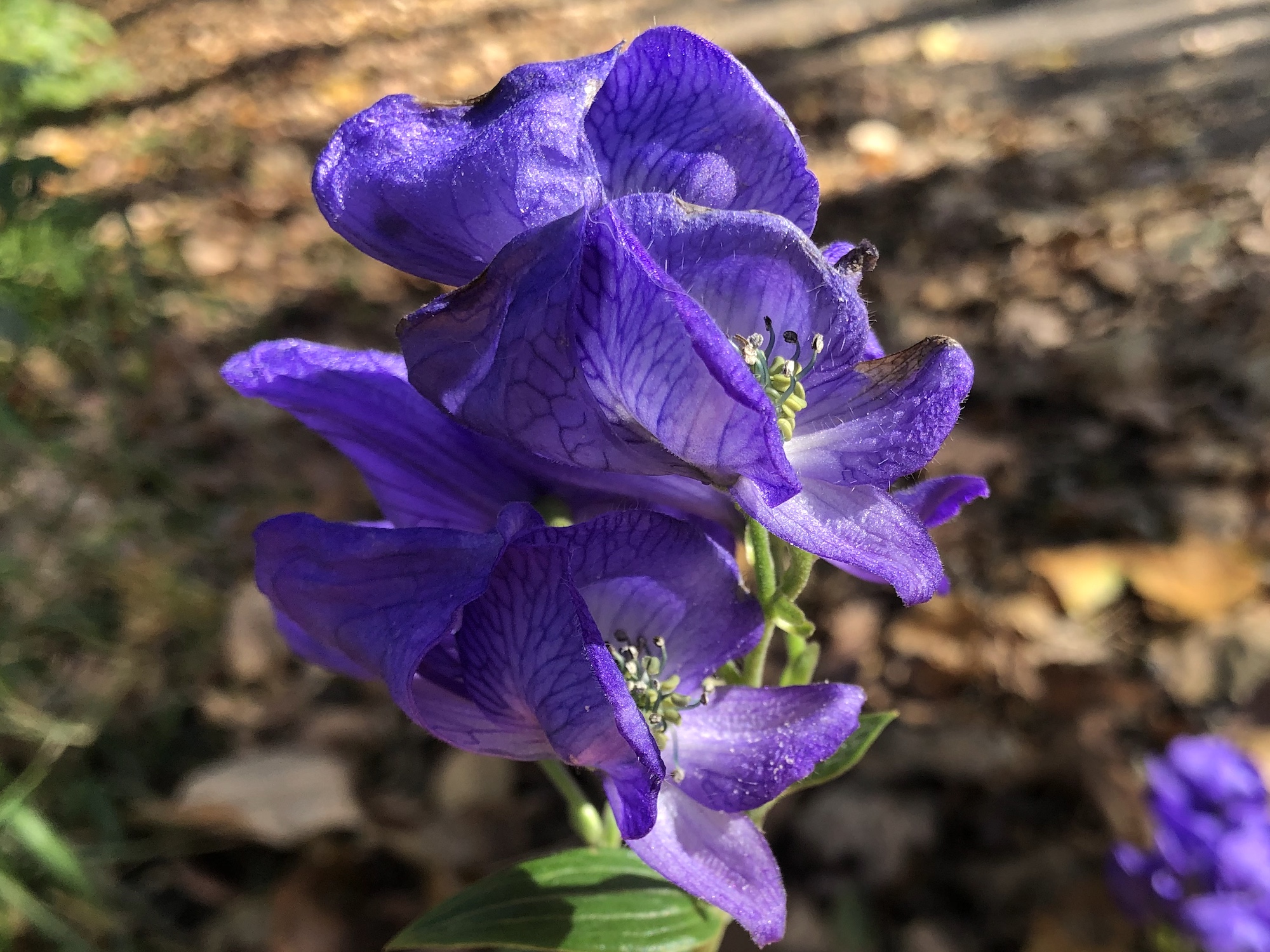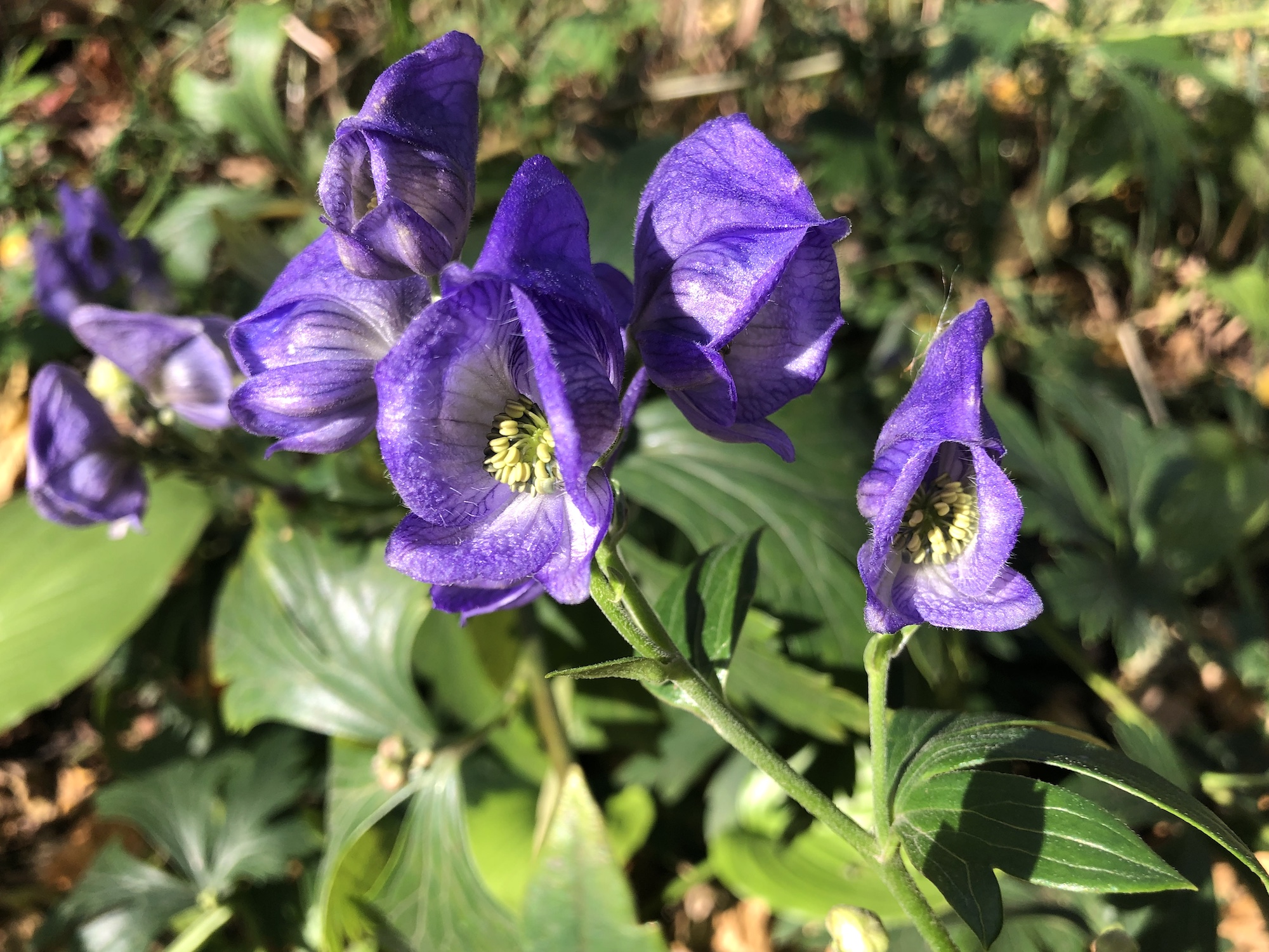 Above: Monkshood on hill off of bike path behind Fox Avenue in Madison, Wisconsin (10/28/22). From a smaller 2' tall plant.