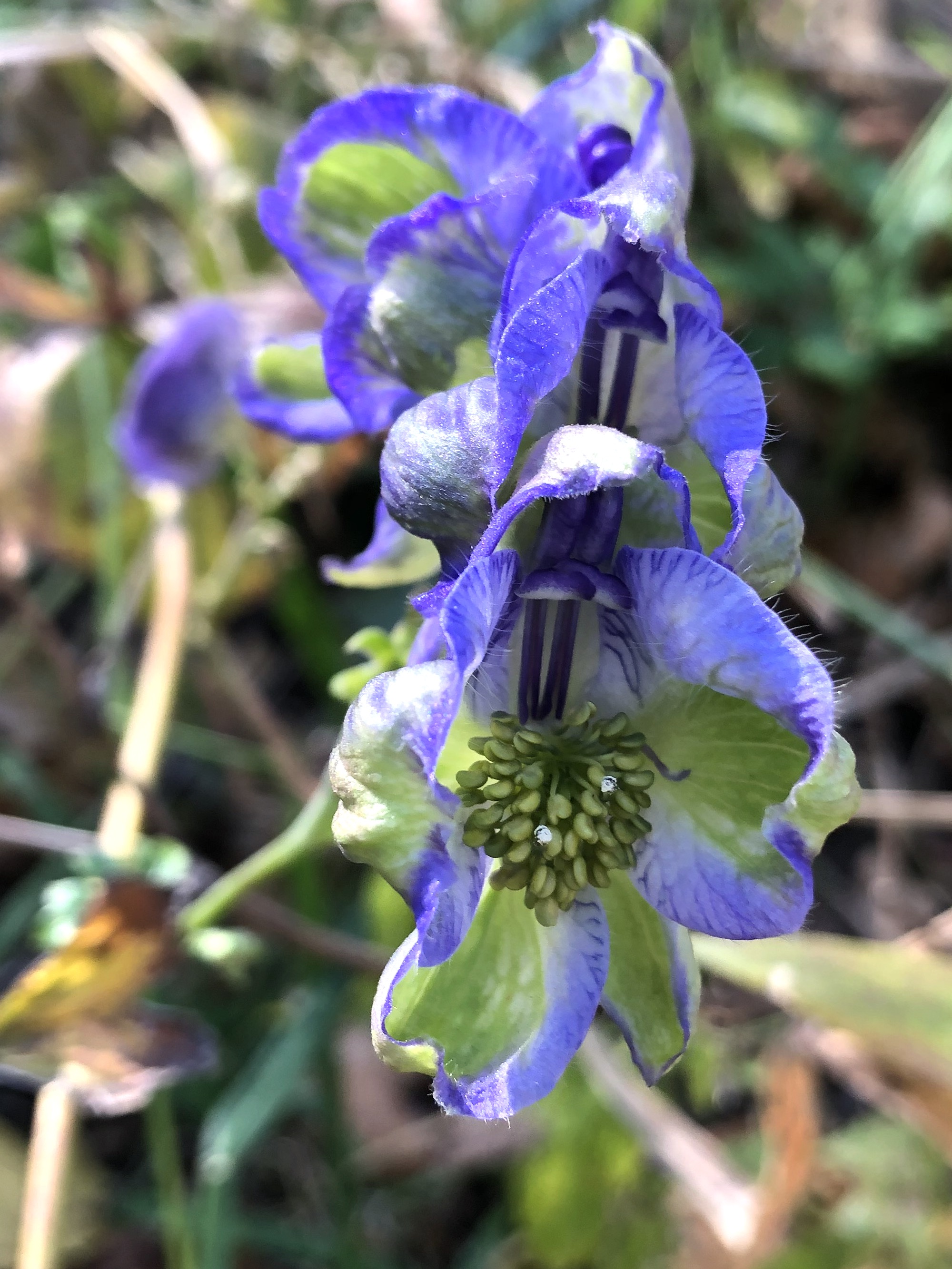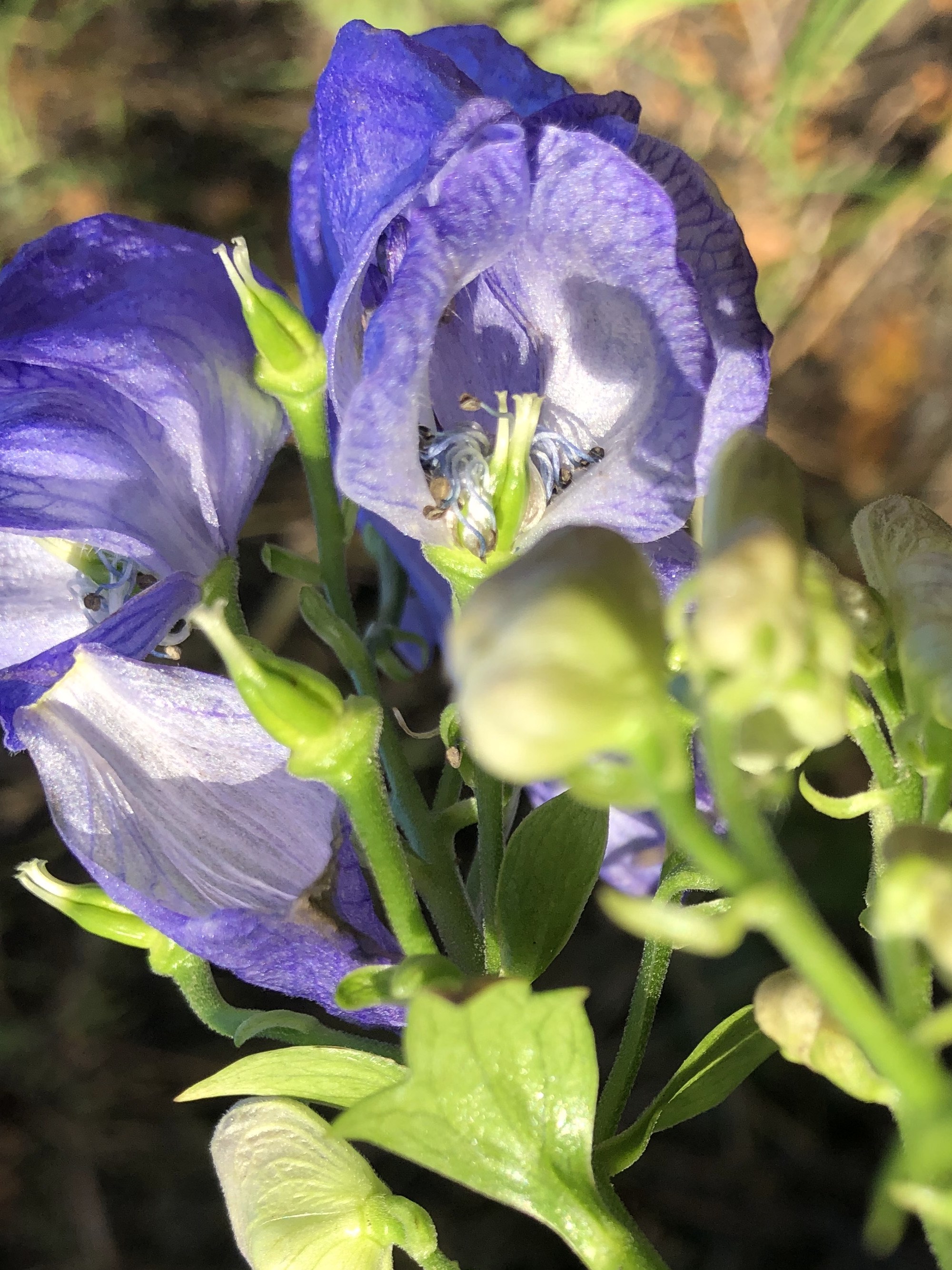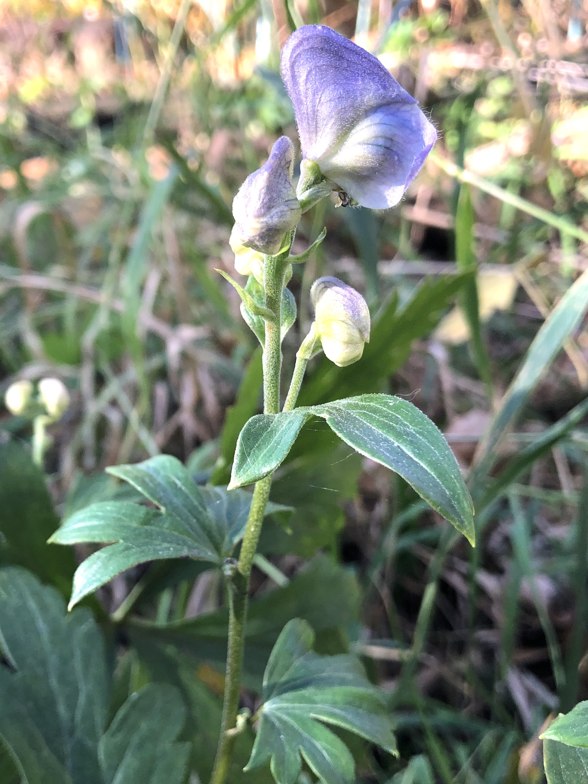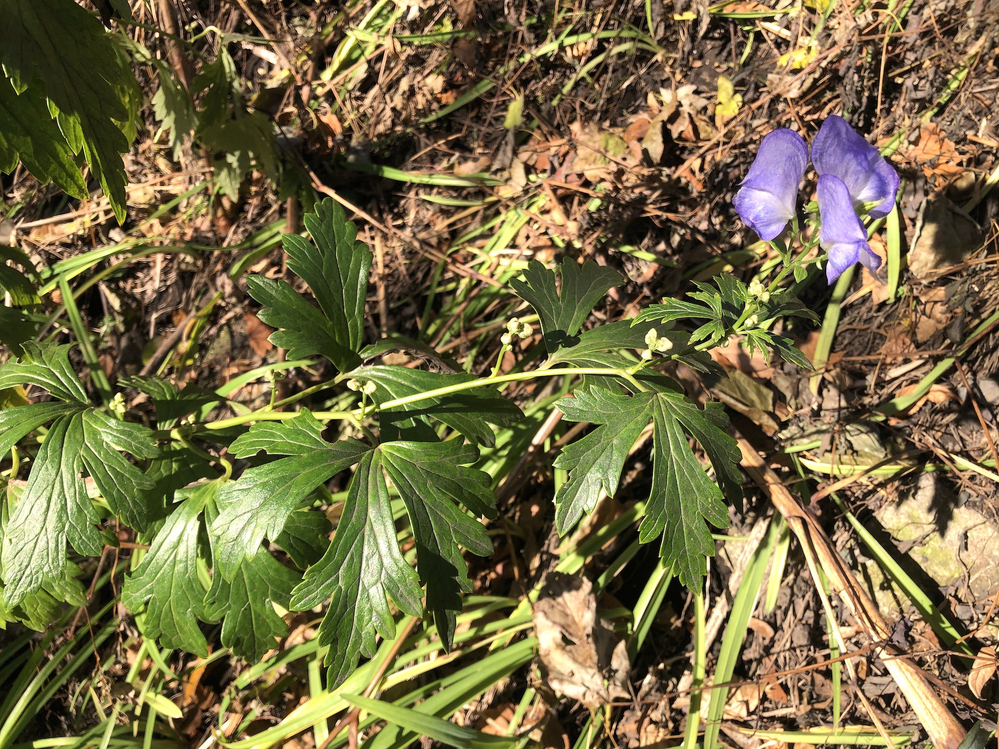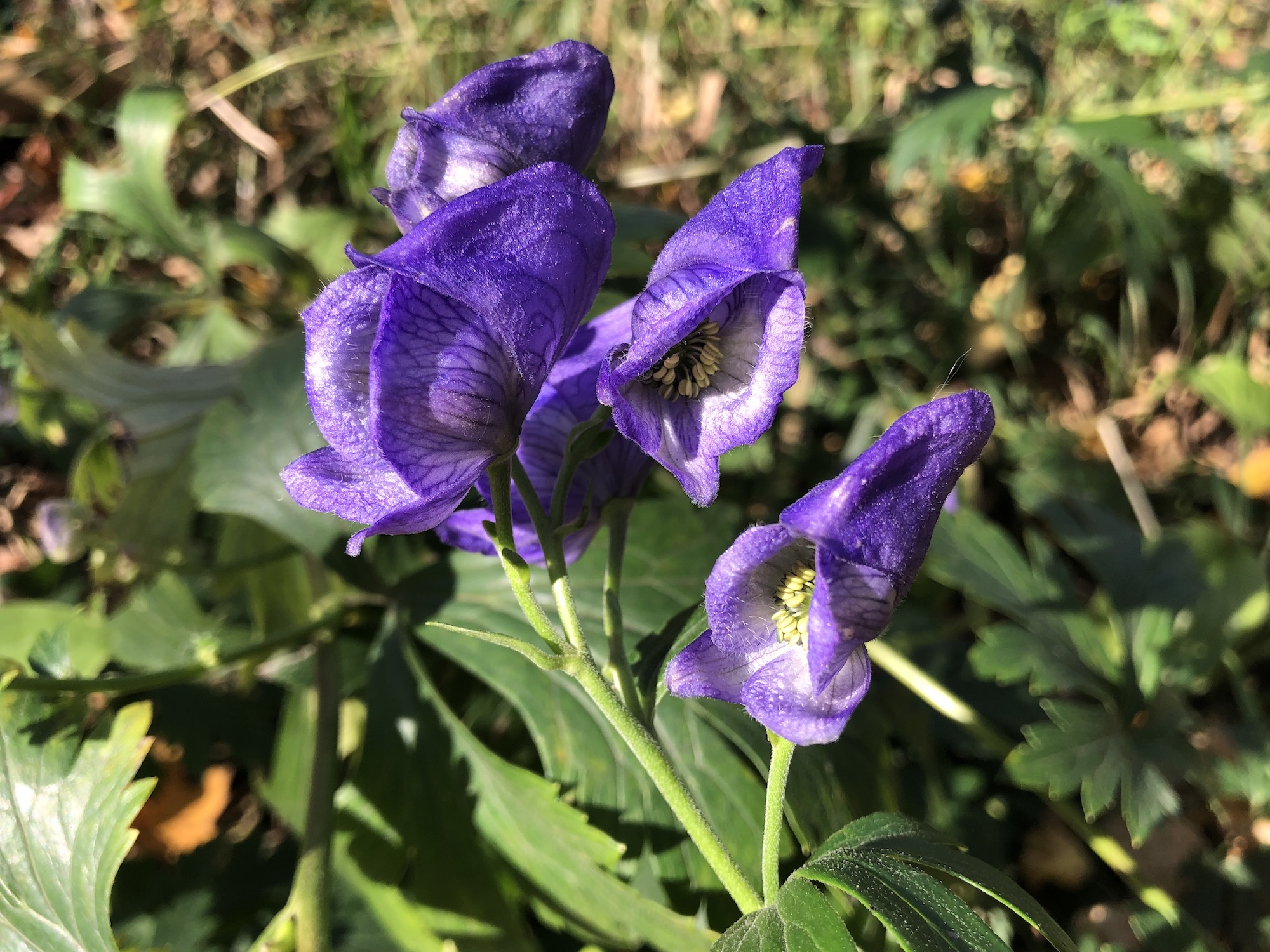 Above: Monkshood on hill off of bike path behind Fox Avenue in Madison, Wisconsin (10/28/22). From a smaller 2' tall plant.