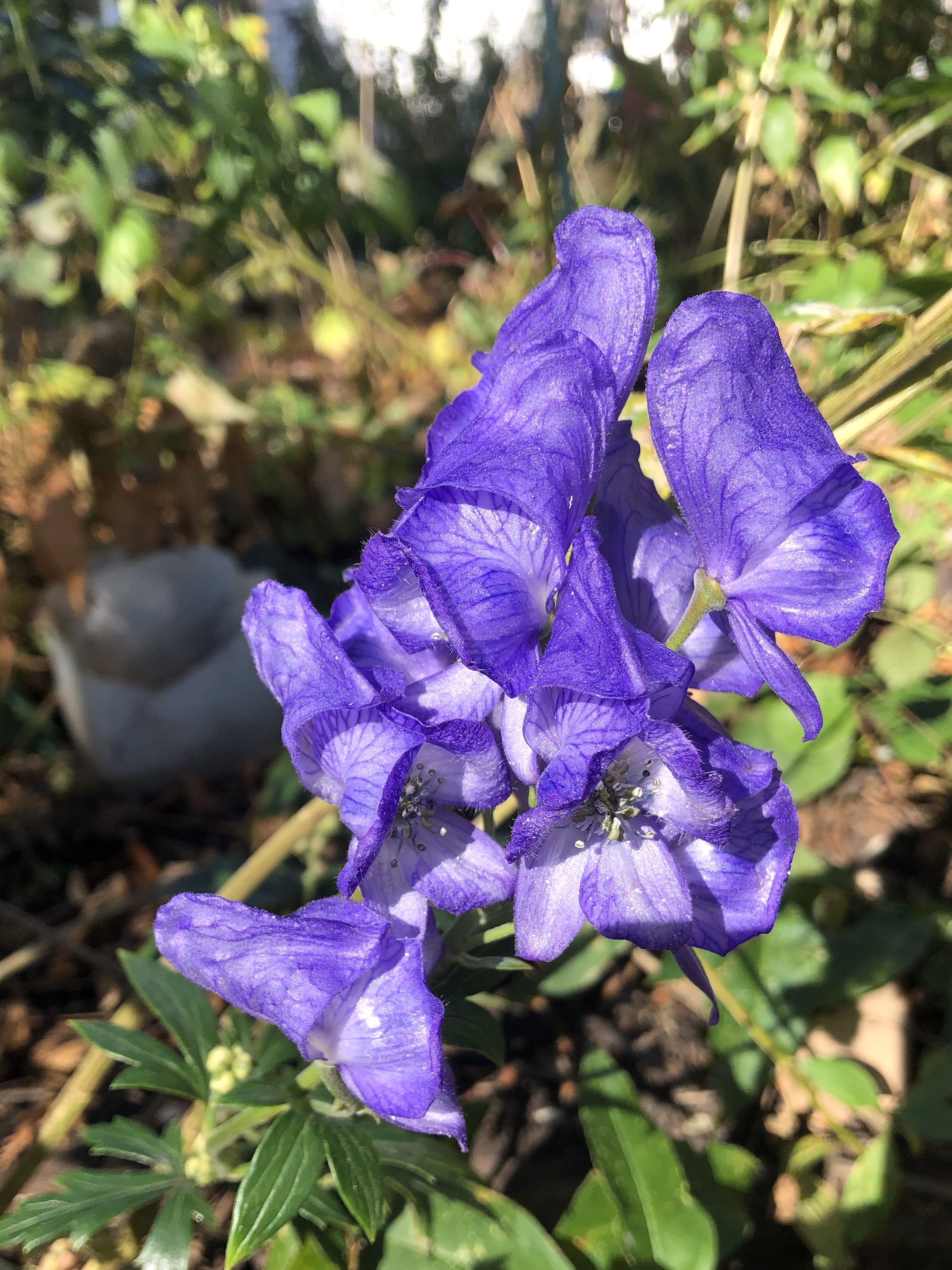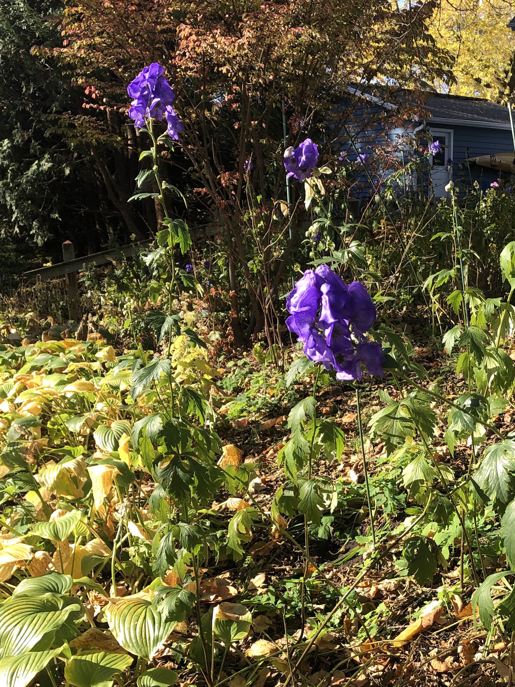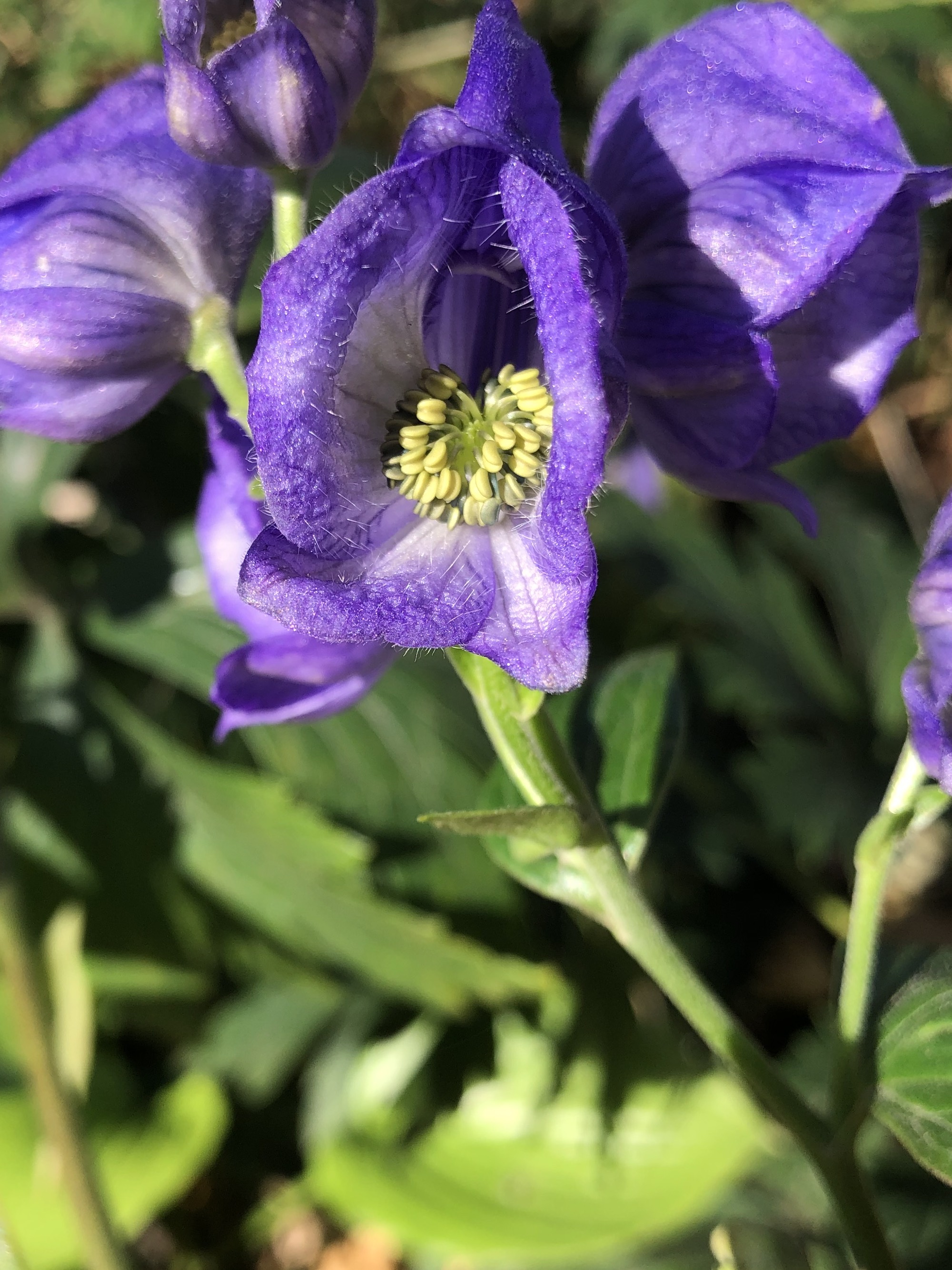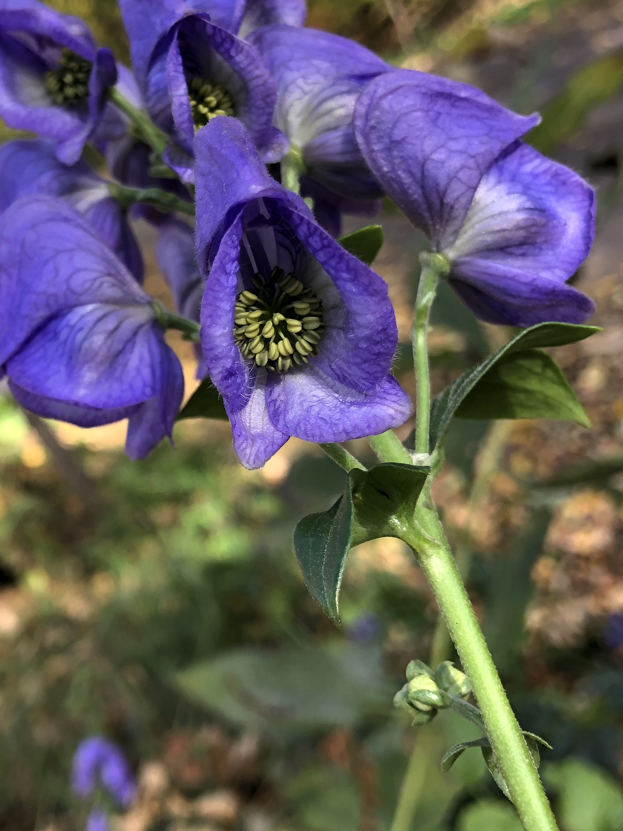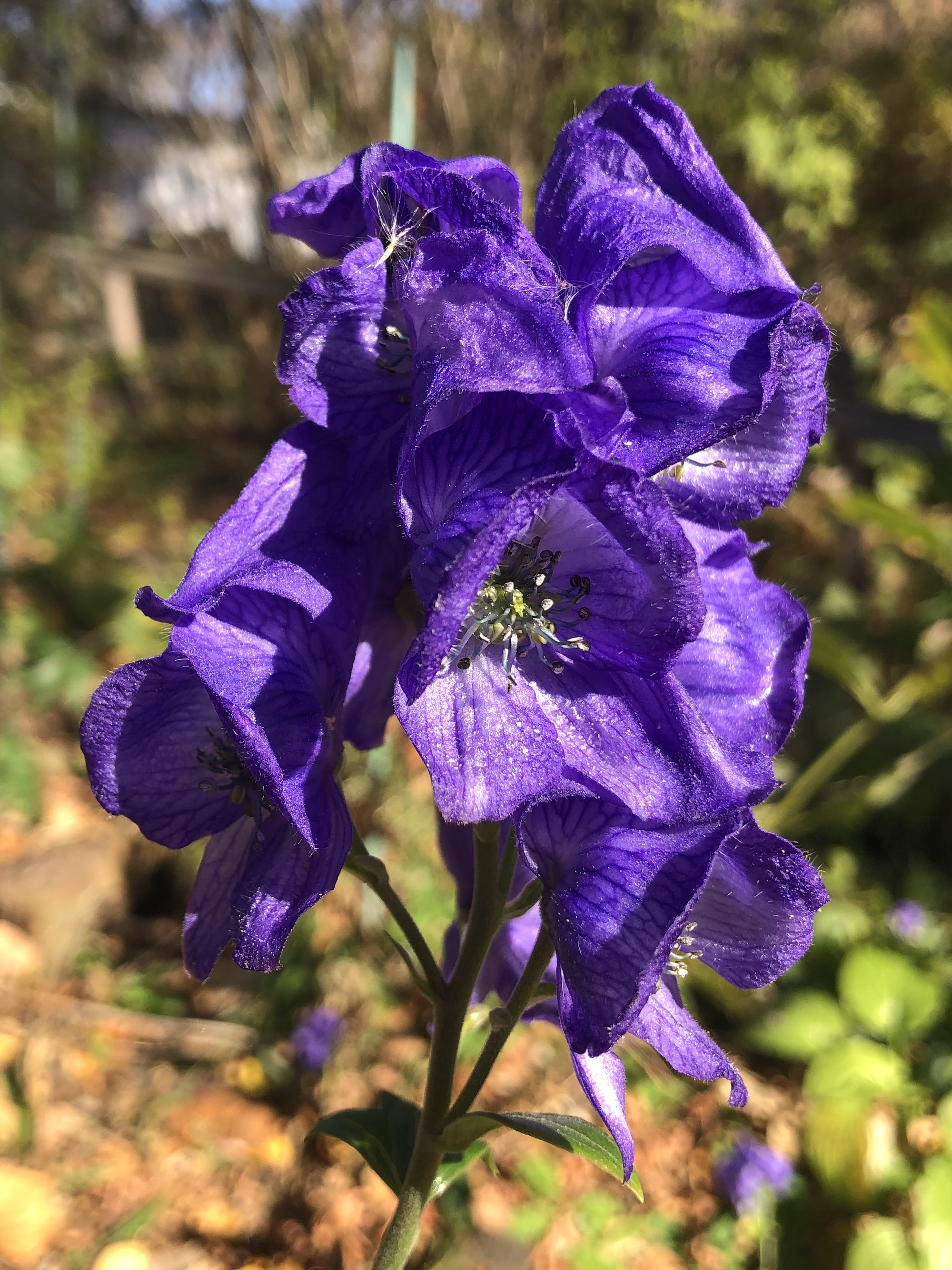 Above: Monkshood on hill off of bike path behind Fox Avenue in Madison, Wisconsin (10/28/22). From a smaller 2' tall plant.