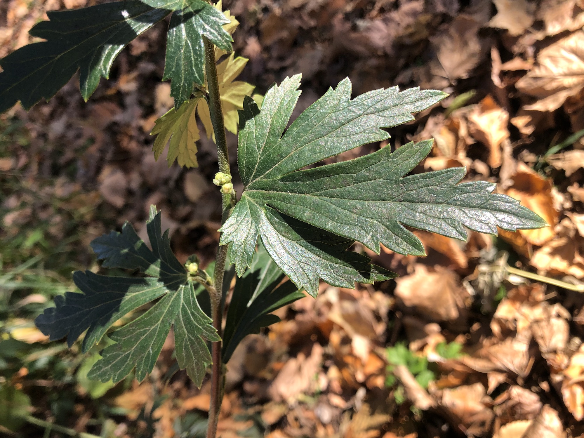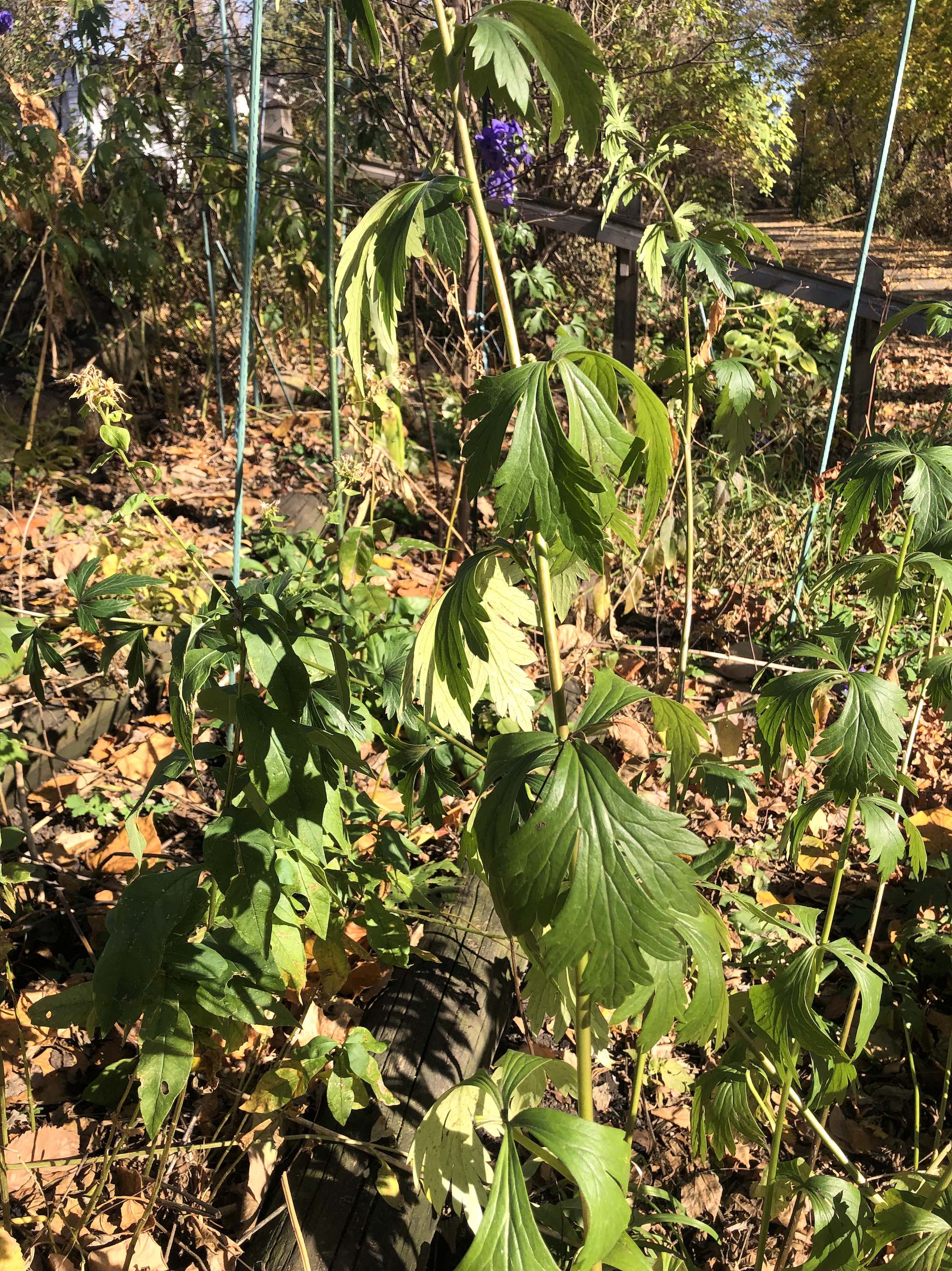 Above: Monkshood leaves. Photo taken on hill off of bike path behind Fox Avenue in Madison, Wisconsin (11/01/22).