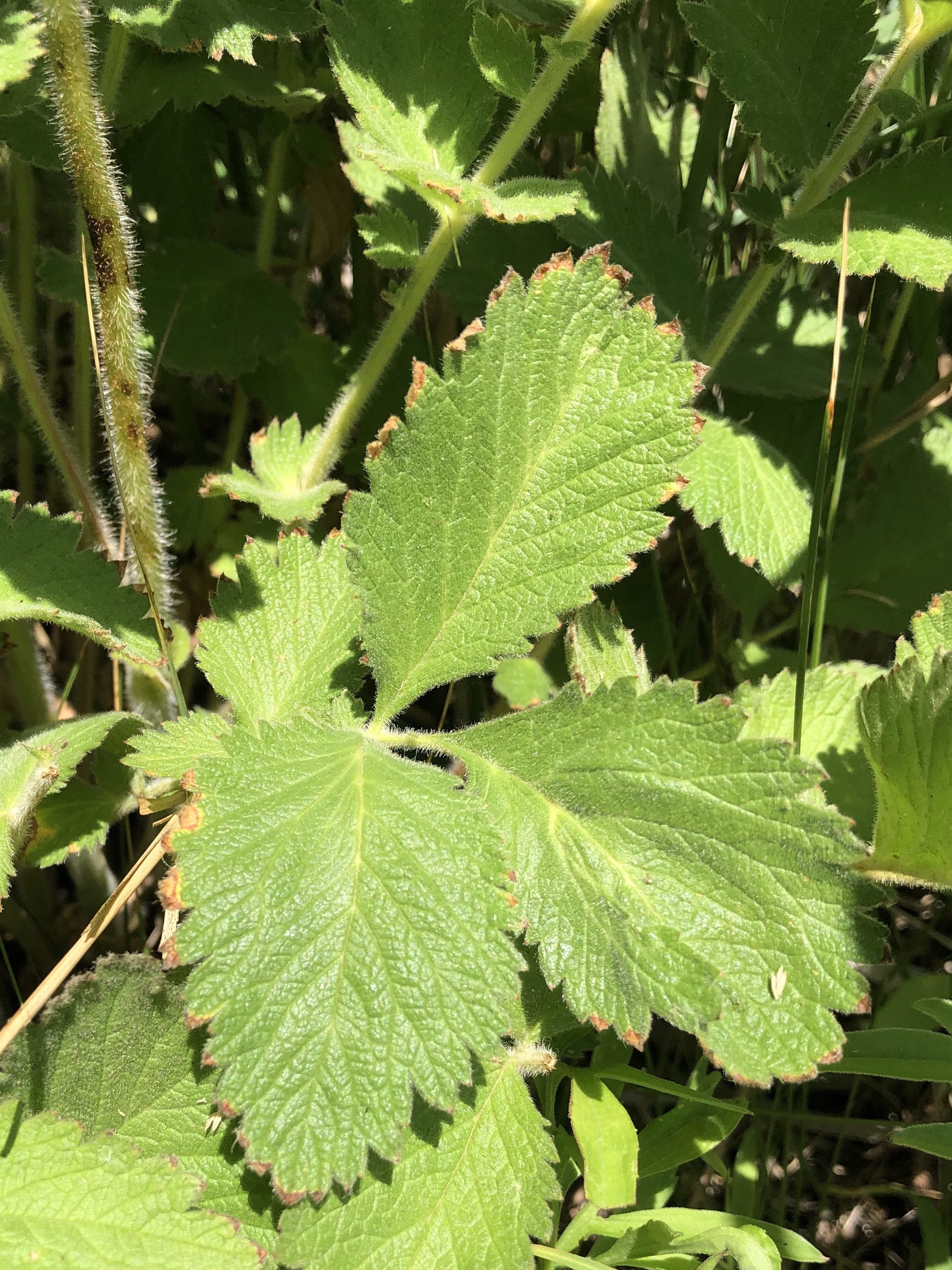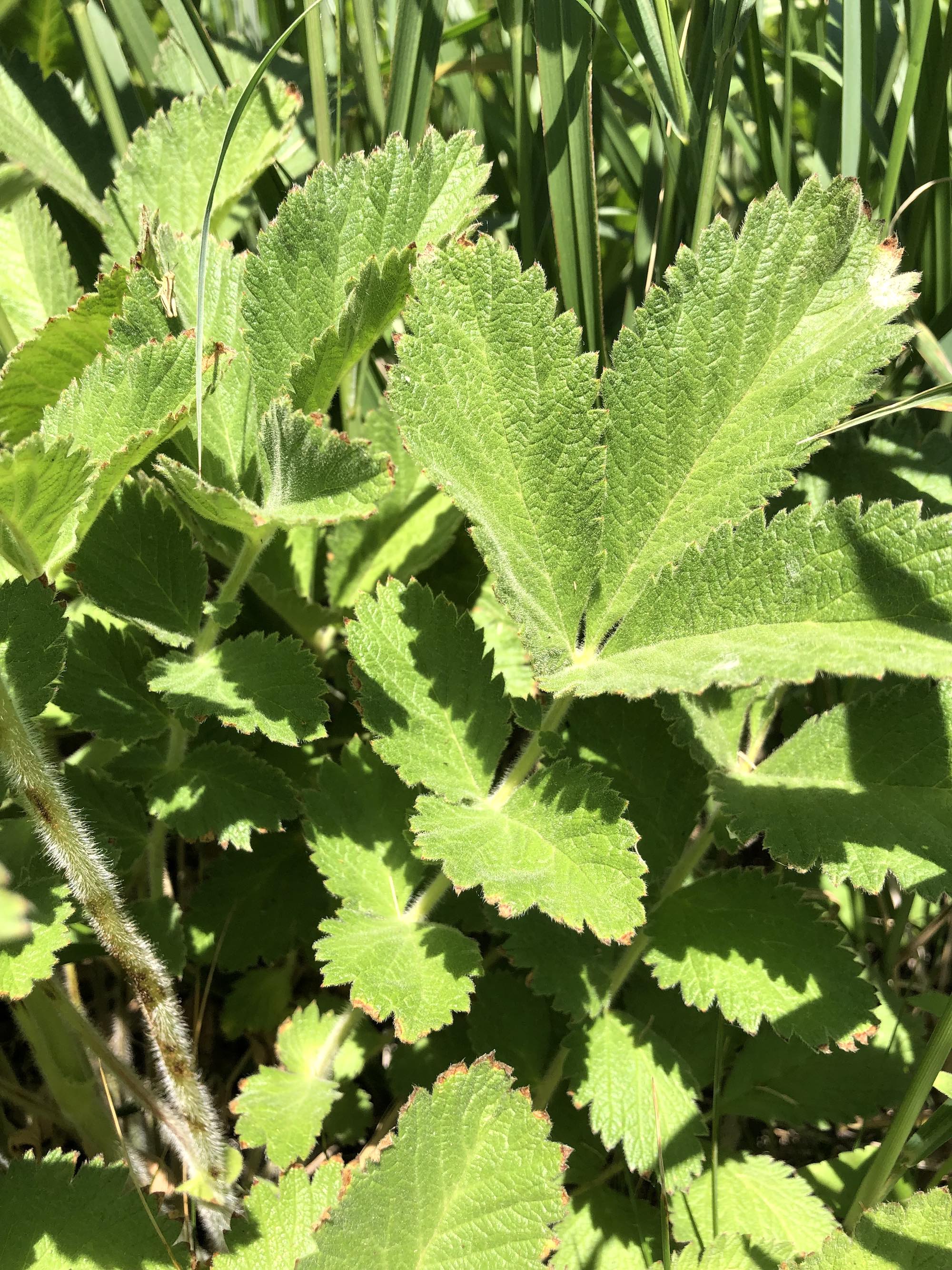Above: Prairie Cinquefoil pinnately compounded leaves on June 19, 2021.